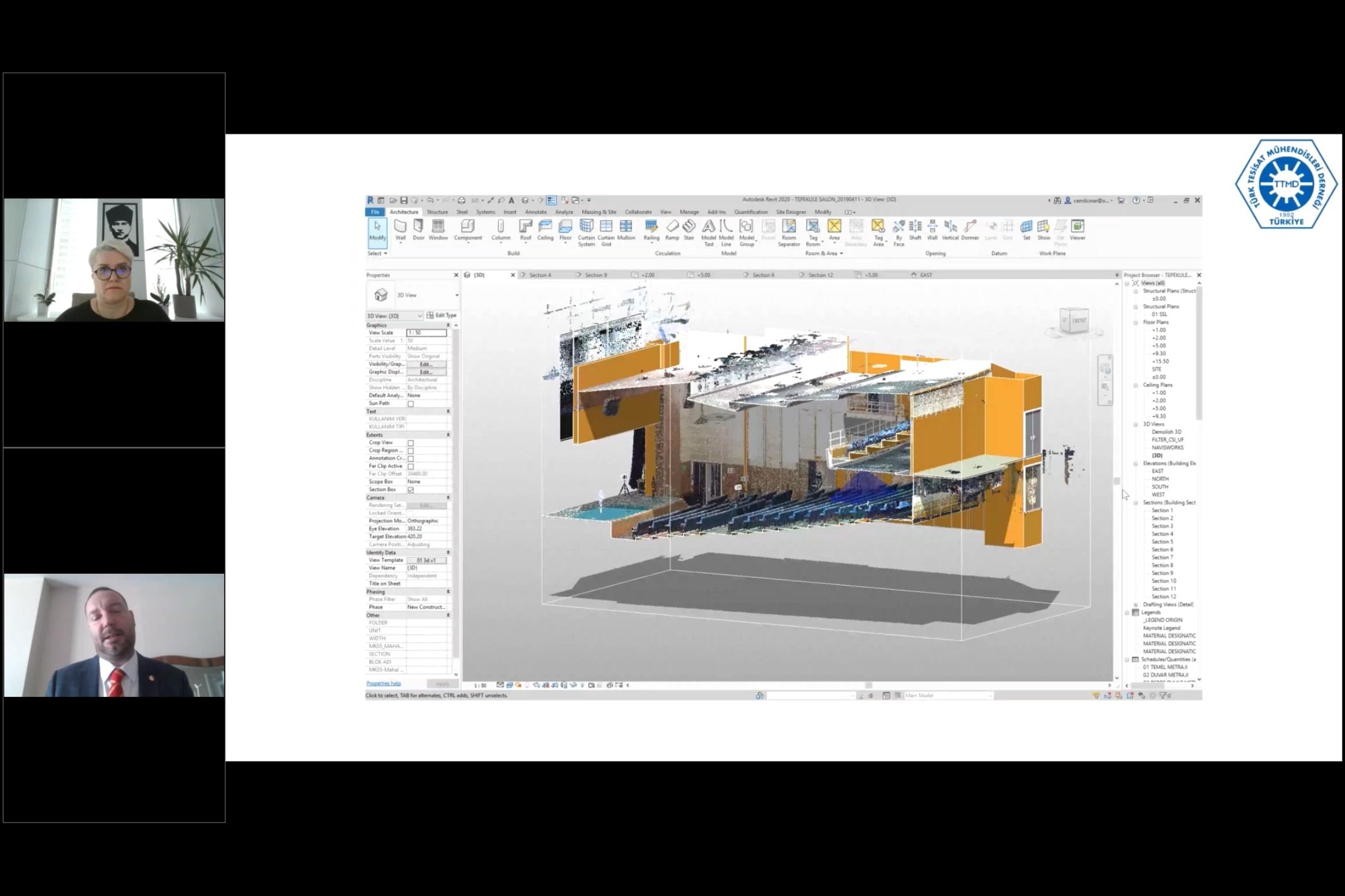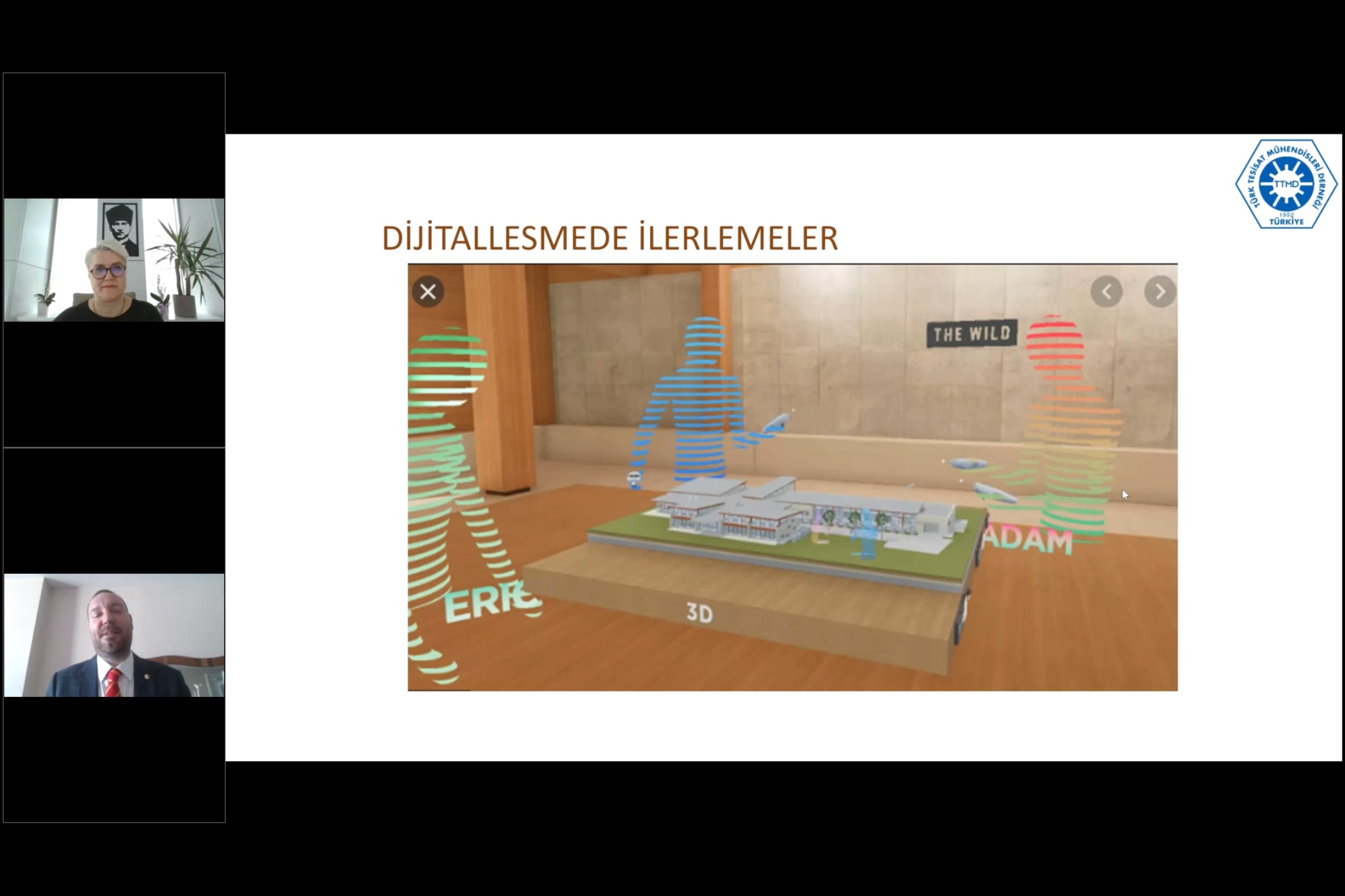 Bir ürünün gerçek fiziksel dünyadaki davranışlarını sergileyen sanal bir kopyasını “dijital ikiz” şeklinde tanımlayarak sunumuna başlayan Ahmet Akçakaya, nesnelerin interneti ve dijital ikizin çalışma prensibi hakkında bilgi verdikten sonra tasarımda dijitalleşme sayesinde görülen ilerlemelerin faydalarını ve 3D görüntüleme avantajlarını gösterdi. Bina bilgi modellemesi (BIM) programları sayesinde bina tasarımlarında her aşamada karşılaşılacak sorunlara önceden önlem alınabildiğine değinen Akçakaya, modüler yapılara yönelik örnekler sundu. Sunumun son bölümünde enerji sistemlerinde entegre sistemleri ve dijital ikiz örneklerini anlatan konuşmacı, sunumun ardından katılımcılardan gelen soruları yanıtladı.