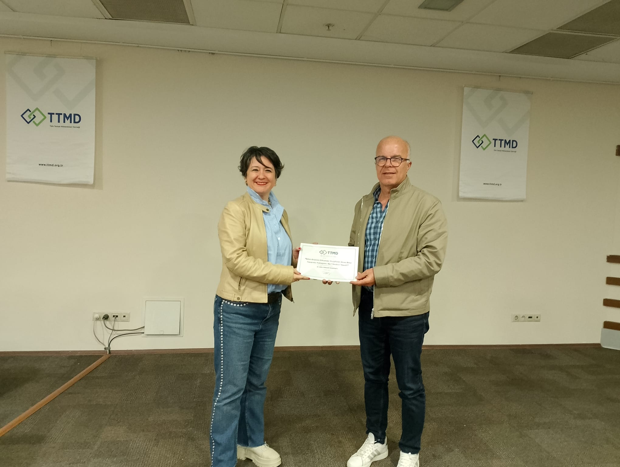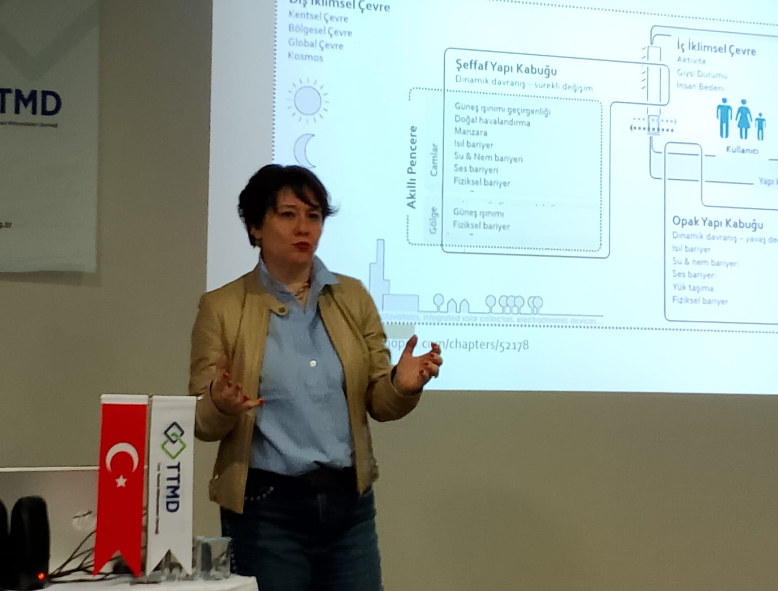TTMD İzmir Temsilciliği’nin düzenlediği İklim Krizinin Etkisinde Disiplinler Arası Bina Tasarımı Yaklaşımı: Ne? Neden? Nasıl? başlıklı seminer 11 Nisan 2026 tarihinde MMO İzmir Şubesi’nde gerçekleştirildi. Oturum başkanlığını Doç. Dr. Ziya Haktan Karadeniz’in yürüttüğü seminere Prof. Dr. Gülsu Ulukavak Harputlugil konuşmacı olarak katıldı.